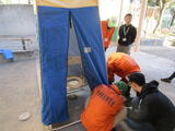 避難所を開設するときの手順や、用具の使い方などを確認しました。