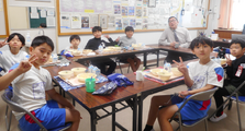 校長室で給食を食べる児童たち。 悪いことをして呼び出しをされ、、、、た訳ではありません!!(笑)