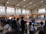 本日、市役所職員、野寺町会の方々がいらして、八石小体育館避難所開設訓練を行いました。
