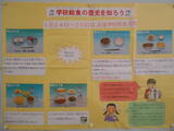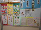 学校では、給食委員会の放送や職員室前の掲示、様々な取組を栄養教諭を中心に行っています。