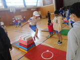 今日は1年2組さんが参加してくれました! やる気満の様子で、跳び箱経験がある子は高い段数に挑戦!跳び箱が初めての子は、跳び箱を使った運動遊びを行いました! 今日初めての跳び箱挑戦で、開脚跳びをクリアしている児童もいました!