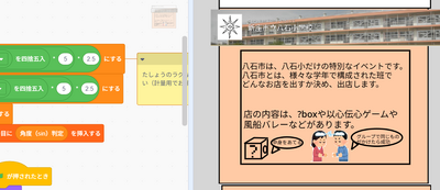 情報クラブでは、6年生がスクラッチを使って作成した「八石小紹介」を4・5年生に披露しました。