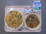 4月13日(月) 今日の給食 キムチチャーハン🍚 投稿: 編集長 (15:24) 先週の金曜日から給食が始まりました!今日の献立は、キムチチャーハン・春雨スープ・ヨーグルト・牛乳です。 児童にも人気のキムチチャーハンは、キムチの汁を切っておき、味見をしながら、辛味が足りなければ汁を追加します。 児童にも食べやすいように調理しています❗ 食べなれない食べ物や料理も、一口チャレンジして欲しいと思います。そして、健康で丈夫な体を作って欲しいです😊 今年度も給食室一同、安全で美味しい給食作りに努めて参ります。よろしくお願い致します。