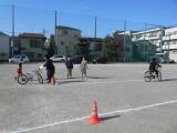 四年生が自転車安全教室を受けました。グランドで実際に自転車に乗りながら交通ルールを学び、修了の証に免許証をもらいました。