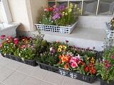 昇降口を出たところの階段部分や体育館前、校舎前の花壇に校門前の花壇が一気に彩られ、気持ちも明るくなります。環境委員の児童の日々の水やりにもよりモチベーションが高まります。3週間後には少し大きくなった色とりどりの花に育ち、卒業・進級を祝ってくれることと思います。