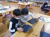 3年生の学習単元も一通り終わり、この一年間学習して子どもたちが興味をもつ生き物(動植物)について個々に調べ学習を行っています。「ダンゴムシのオスメスの見分け方はどうなんだろう」「パンジーはどうしてあんなに色とりどりなのだろう」「今現在、校庭にキリギリスがいたけど、真冬なのに大丈夫なのかな」などなど、校庭で観察できるものは直接観察をしています。また、図書室の本やタブレットを使って校庭では観察できない生き物や観察しても分からないことも調べています。生き物については大人でも分からないことだらけです。調べて答えを見つける子どもたちの表情は生き生きとしています。
