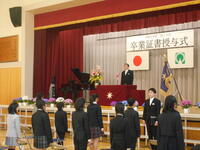 本日、第55回卒業証書授与式が行われました。卒業式前には、在校生とのお別れ式を行いました。在校生代表のことば、卒業生代表のことばがあり、卒業生から在校生へ伝統のバトンが引き継がれました。その後、卒業生とともに歌う最後の校歌斉唱を行いました。最後には、在校生が作る花道を卒業生が通りました。見送る在校生は、お世話になった卒業生を前にして、様々なことを考えたと思います。